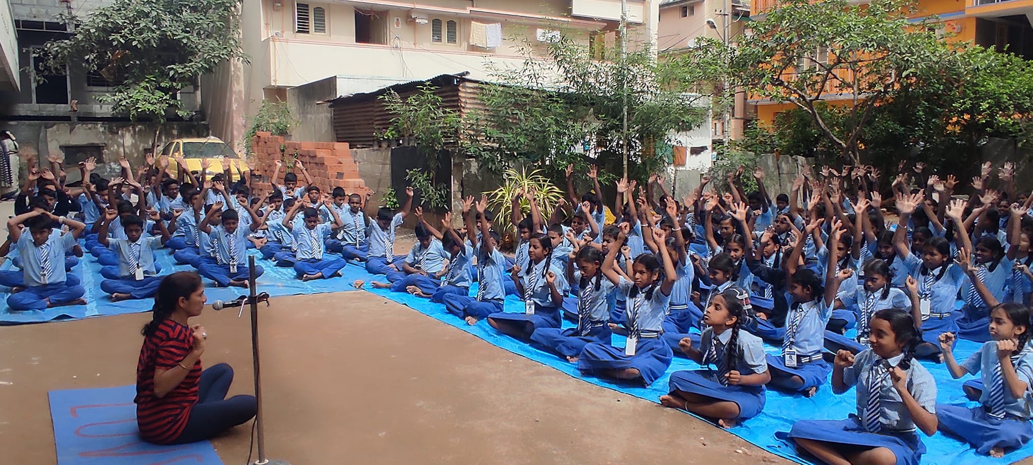 Under the" Maitri "Project Yoga class/Sri Ramakrishna School Children/Weekly twice/Bangalore